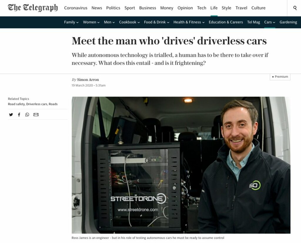 In today’s Telegraph, project engineer Ross James explains the role of a safety driver, and his real world experiences of trialing autonomous vehicle technology. In the article, Ross describes some of the key challenges he faces on a day to day basis as he oversees StreetDrone’s real world deployments of open source self-driving software. To […]