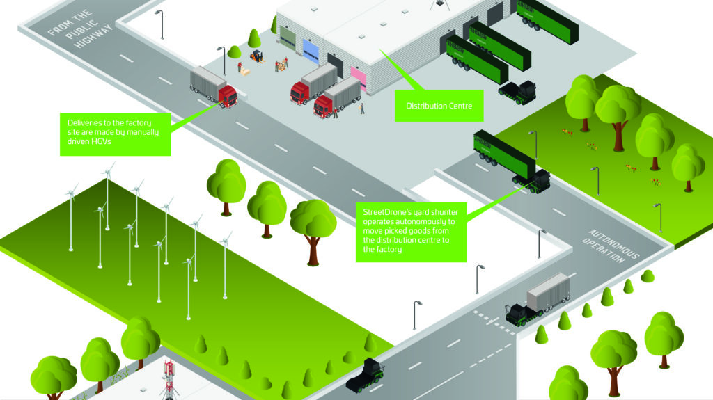 StreetDrone’s Smart 1 Terminal operates autonomously to move picked goods from the distribution centre to the factory